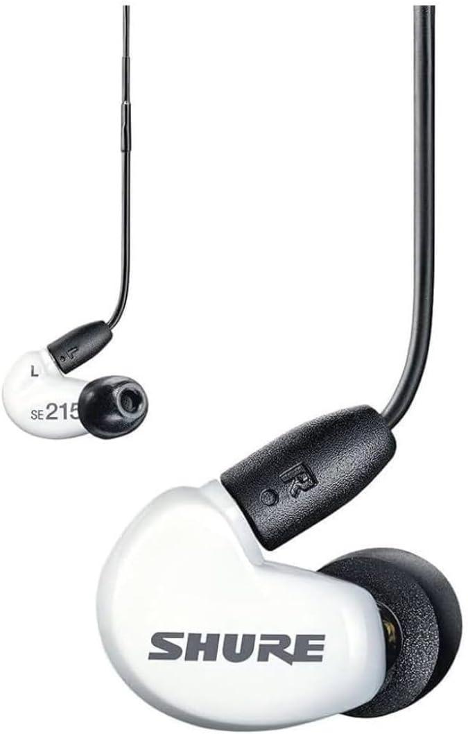 Shure AONIC 215 Wired Sound Isolating Earbuds, Clear Sound, Single Driver, Secure in-Ear Fit, Detachable Cable, Durable Quality, Compatible with Apple & Android Devices – Black(White)