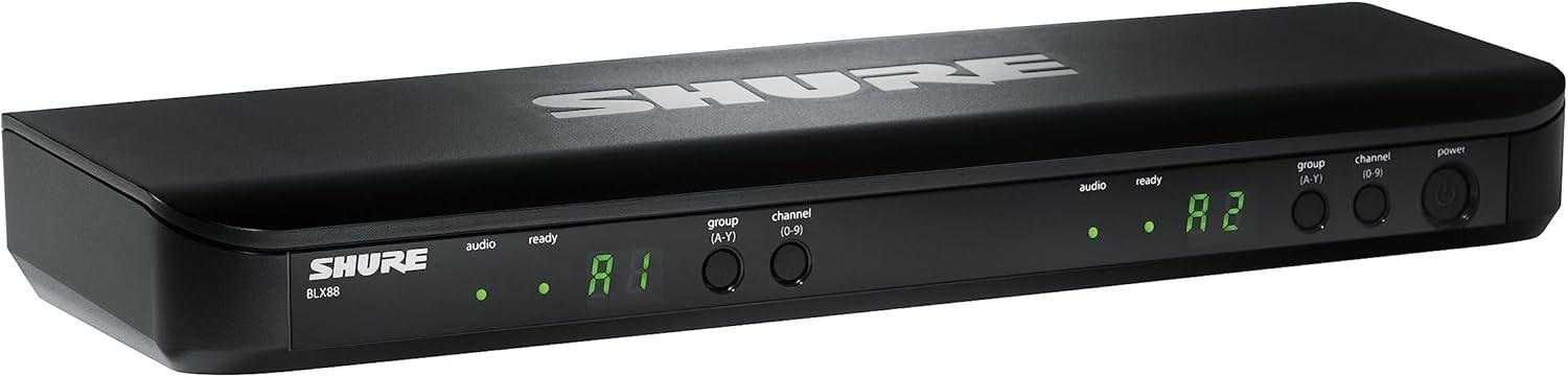 imageShure BLX1288MX153 Wireless Microphone System  14Hour Battery Life 300 ft Range UHF  Includes Handheld ampamp Earset Mics Dual Channel Receiver  H10 Band BLX1288MX153H10H10 Band 542572 MHz