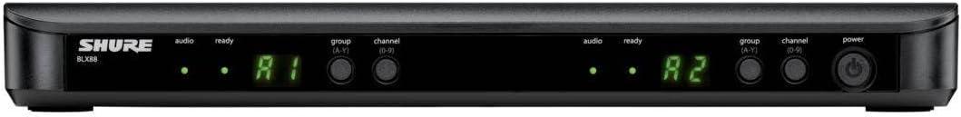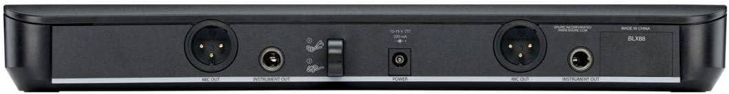 imageShure BLX288SM58 Wireless Microphone System  14Hour Battery Life 300 ft Range UHF  Includes 2 SM58 Handheld Vocal Mics Dual Channel Receiver  H10 Band BLX288SM58H10J11 Band 596616 MHz