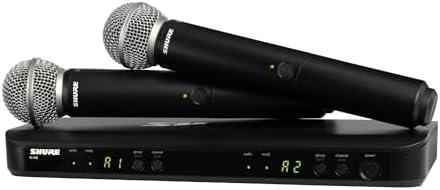 Shure BLX288/SM58 Wireless Microphone System – 14-Hour Battery Life, 300 ft Range, UHF | Includes (2) SM58 Handheld Vocal Mics, Dual Channel Receiver | H10 Band (BLX288/SM58-H10)(H11 Band (572-596 MHz))