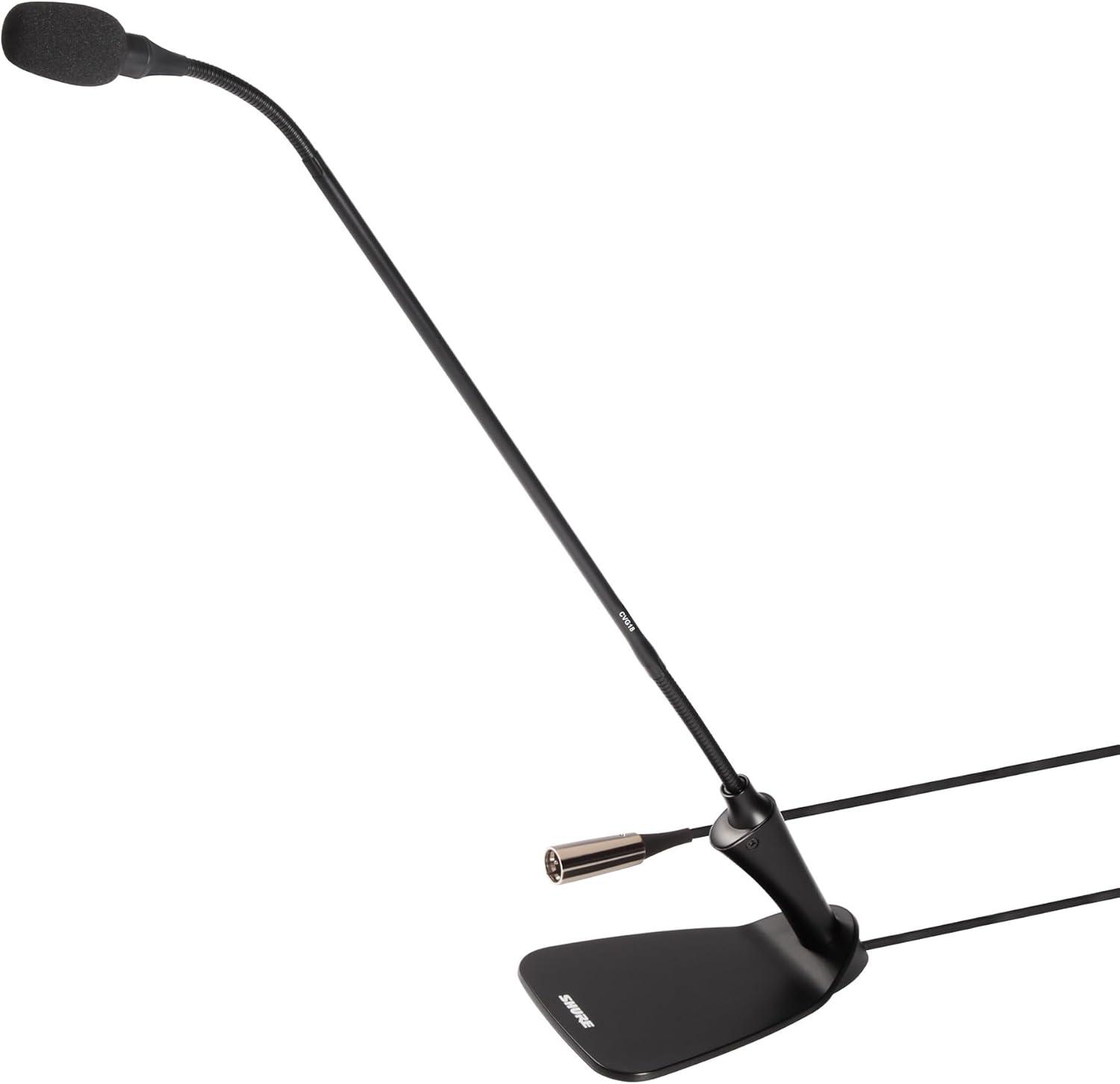 Shure Centraverse CVG Gooseneck Microphone – Black, Cardioid Condenser Mic with 18-inch Neck and Inline Preamplifier, Includes Windscreen & Mounting Flange (CVG18-B/C)(Mic Only)