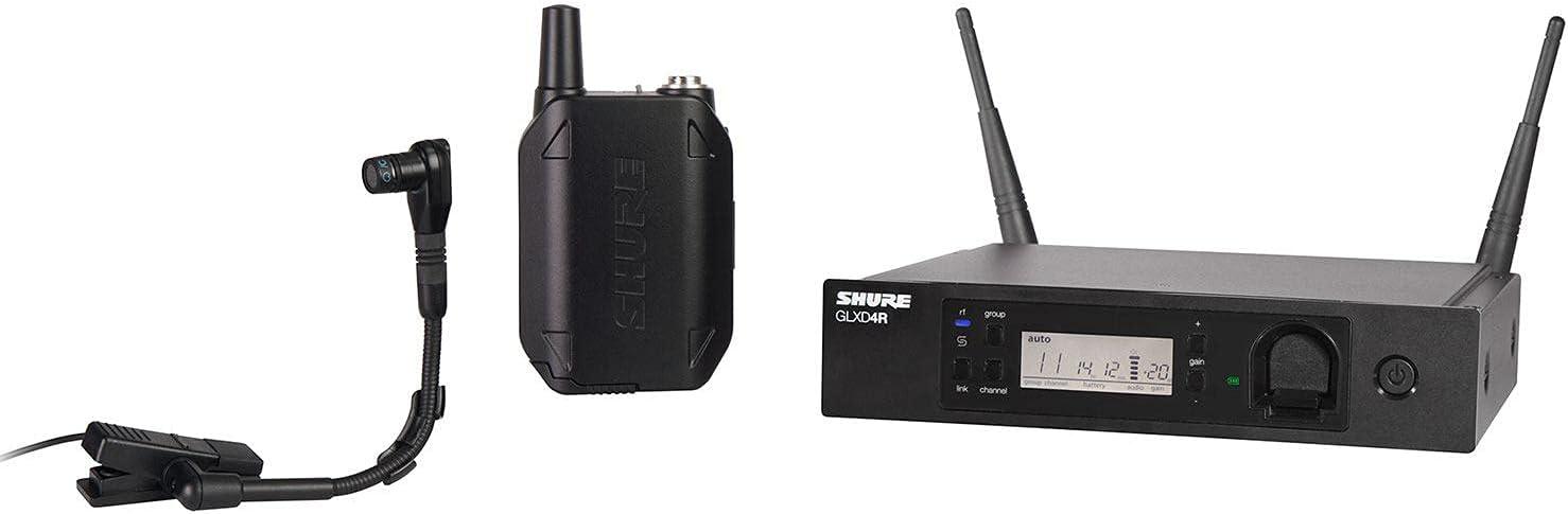 imageShure GLXD14B98 Dual Band Digital Wireless Microphone System for Brass Woodwinds Percussion  12Hour Battery Life 100 ft Range  Clipon Instrument Mic Single Channel Receiver GLXD14B98Z3Standard