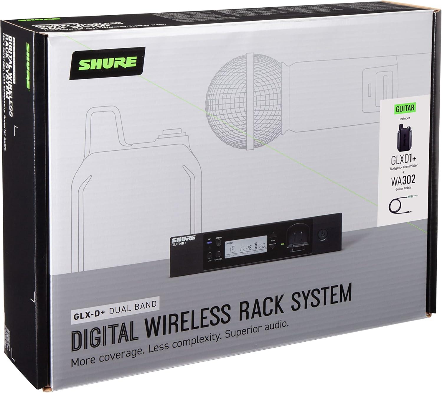 Shure GLXD14R+ Dual Band Pro Digital Wireless System for Guitar and Bass – 12-Hour Battery Life, 100 ft Range | Includes 1/4″ Jack Instrument Cable & Single Channel Rack Mount Receiver (GLXD14R+-Z3)(Standard)