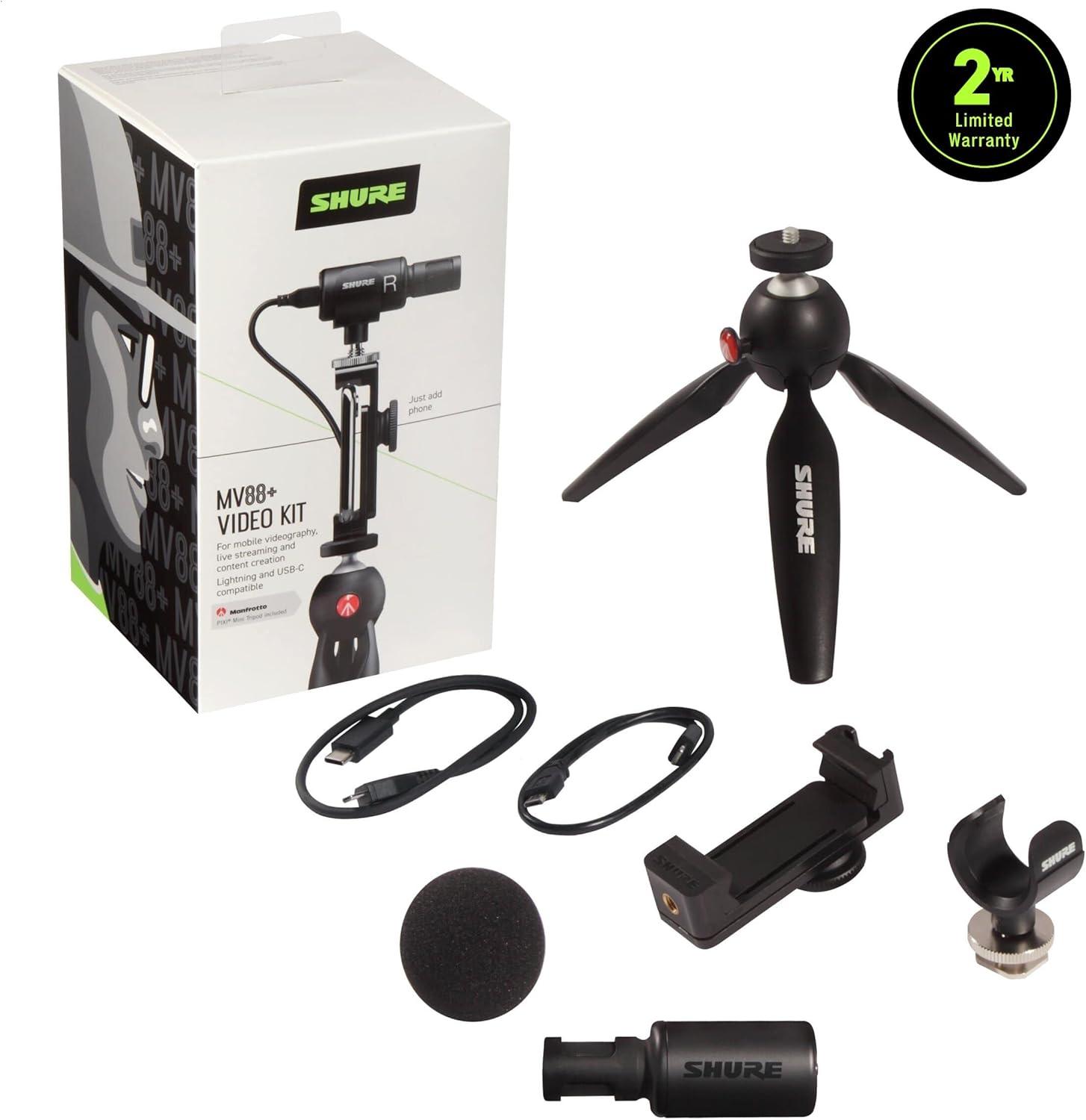 The MOTIV MV88+ Video Kit is a premium Digital Stereo Condenser Microphone. Your new mobile recording rig directly connects to any Apple device via a Lightning connector, or via USB-C to select additional devices. The MV88+ has all you need to capture great content right out of the box. The included phone mount is also compatible with your existing set-up, allowing to connect to any standard ¼” tripod. The MV88+ is compatible with: iOS Devices, Samsung Galaxy Note 8, Samsung Galaxy Note 9, Samsung Galaxy s7 (requires additional micro-B cable or OTG adapter), Samsung Galaxy s8/ s8+, Samsung Galaxy s9/ s9+. Note that not all android devices provide enough power or support USB audio. Note that the MV88+ is NOT compatible with iPad Pro.