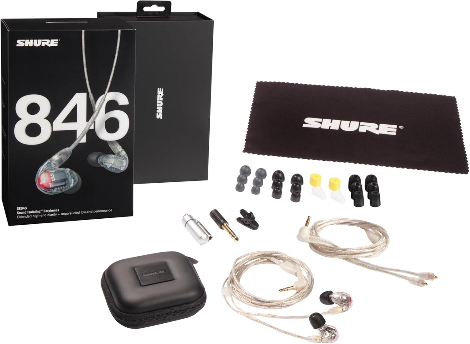 Four custom-engineered drivers tailored to blend precisely with each other deliver extended high-end clarity, while the groundbreaking low-pass filter design gives you the performance of a true subwoofer — all without sacrificing a solitary detail. Customize your audio even further with a selection of four unique sound signatures, including a new “extended” option. This is unparalleled aural acuity based on decades of dedication. It’s why more musicians trust Shure and true audiophiles fall in love. Detachable cable enables the ability to convert to wireless or integrate other wired accessory options, and a comprehensive sleeve assortment provides a perfect fit. Sophisticated listening for the refined ear. Includes SE846 PRO Gen 2 Sound Isolating earphones with extended, balanced, warm and bright sound signature filters, detachable 3.5mm cable, Comply sleeves (XS, S, M, L), soft flex sleeves (S, M, L), foam sleeves (S, M, L), triple flange sleeves, yellow foam sleeves, 1/4″ adapter, premium carrying case, and user guide. Free 2-YEAR WARRANTY included.
