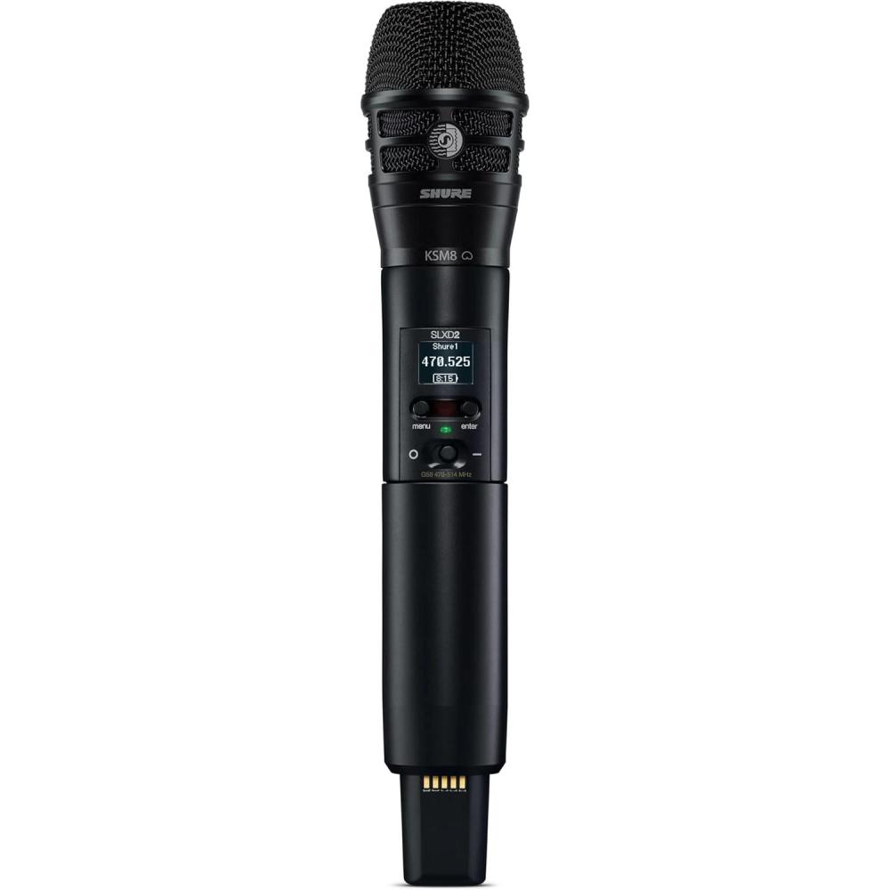 Shure SLXD2/K8B Handheld Transmitter with KSM8 Black Vocal Mic Capsule - for use with SLX-D Digital Wireless Microphone Systems, Receiver Sold Separately | G58 Band (SLXD2/K8B=-G58)(G58 Band (470-514 MHz))