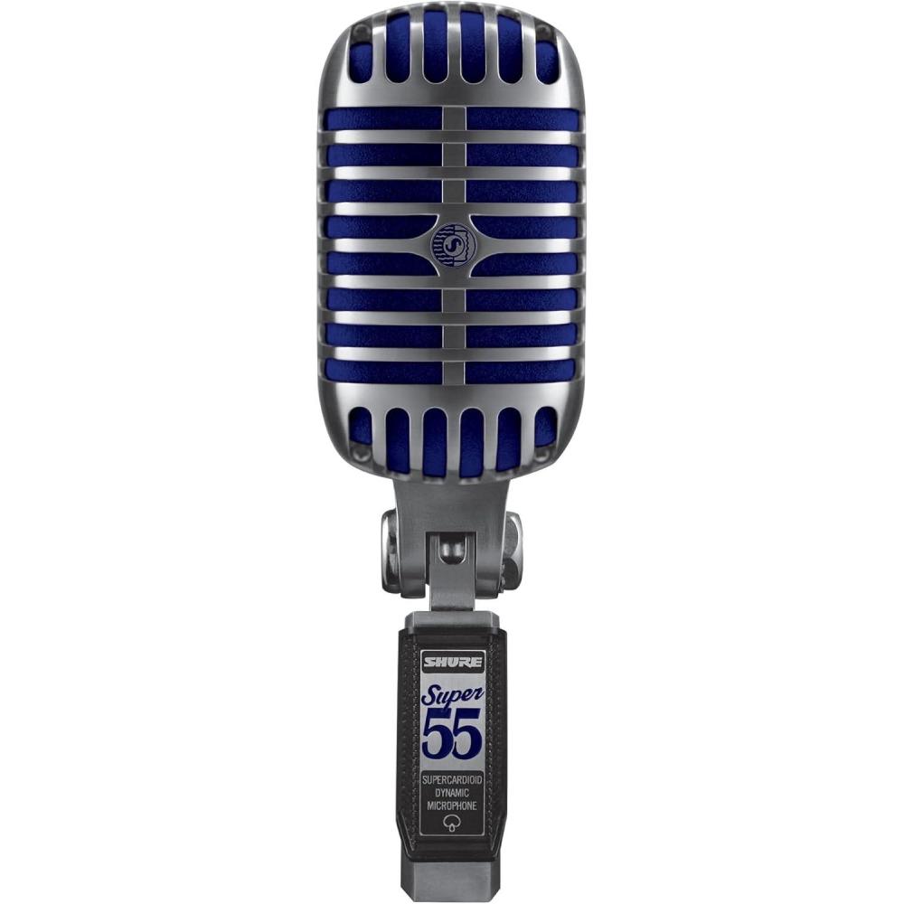 The Super 55 Deluxe Vocal Microphone features a signature satin chrome-plated die-cast casing, Supercardioid polar pattern, vibrant blue foam, and tailored frequency response for natural vocals and speech. Integrated, swivel stand mount is included. The combination of updates make the Super 55 the ideal choice when looking for a dramatic – yet affordable – improvement in sound quality with an unmistakable vintage design. Ideal for stage, studio recording, podcasting, and other sound applications where a stand-mounted microphone with a classic look is desired.